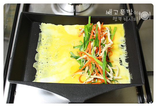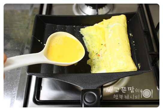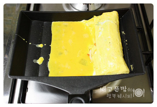 계란물이 반쯤 익으면 돌~ 말아주면서