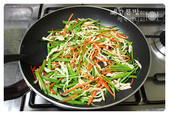 부추의 숨이 살짝이 죽을 정도로만...볶아 준비해 줍니다.
