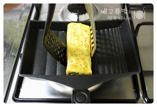 그리고 뒤집개 2개를 이용해 계란말이