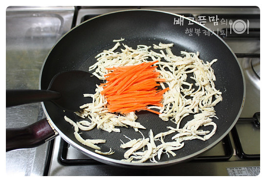그리고 여기에 당근을 넣고 볶아 한숨 죽으면....