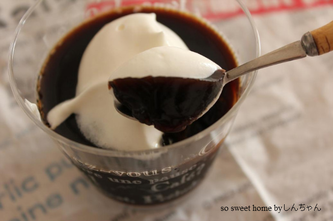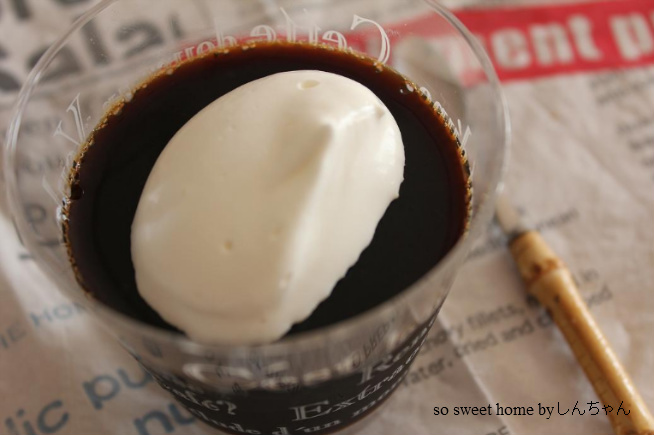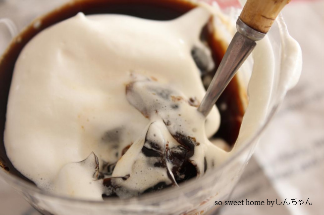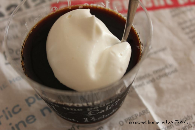 쌉싸름한 커피젤리 위에 생크림을 얹어서 먹어요.