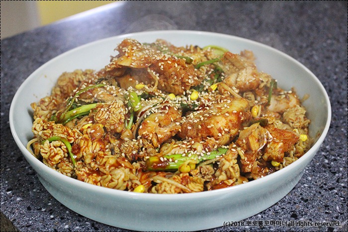 그릇에 내가기 전에 참기름 한바퀴 휘둘러주면 향이 좋아요~