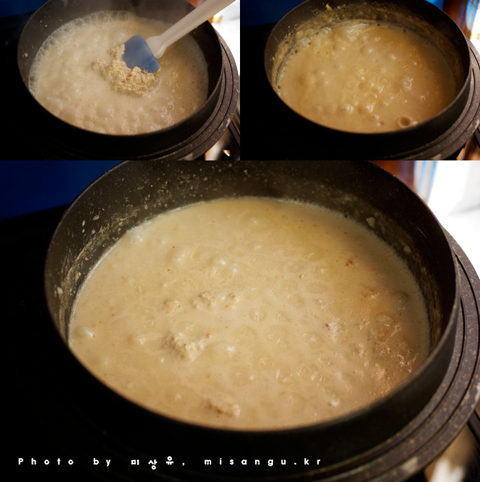 3. 약불에서 걸죽하게 끓여 줍니다.