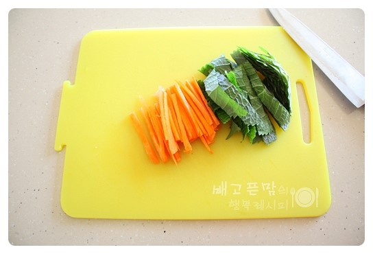 당근 1/8개를 곱게 채썰어 줍니다.