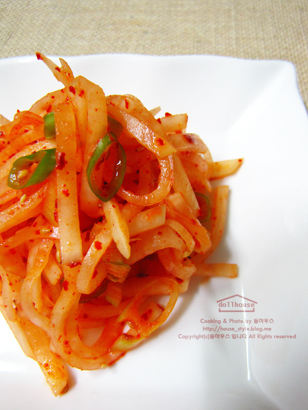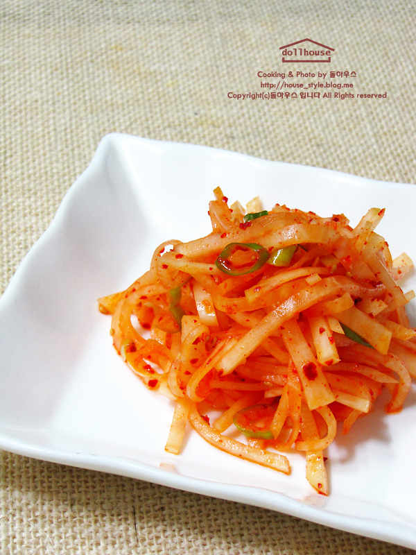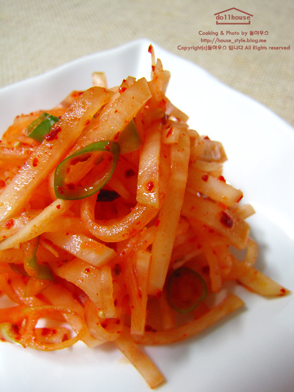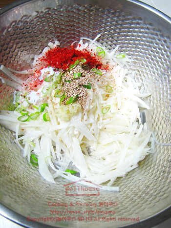 혹시, 무가 너무 짜다 싶으면 채썰은 무를 잠시동안 물에 담궜다 사용하시면 되구요...