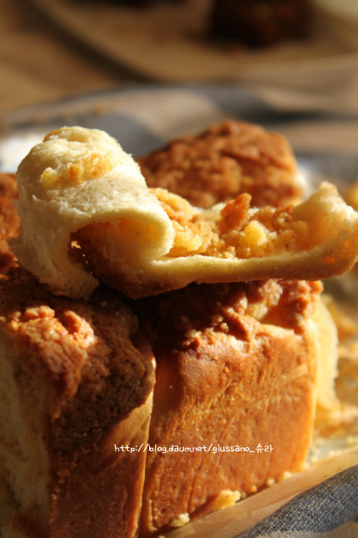 소보루를 넣어 소보루 식빵을 만들었어요...