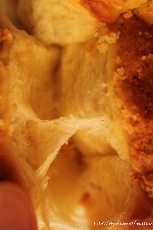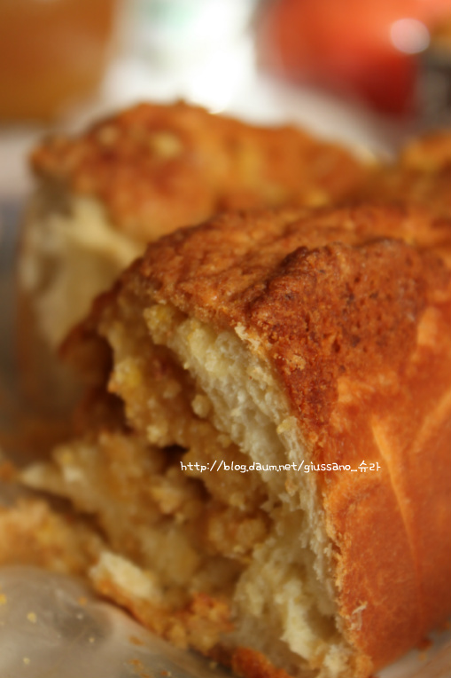 소보루가 빵 겉면에만 붙어 있어