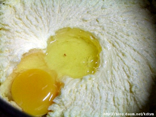설탕과 소금이 버터와 충분히 믹싱이 되면.. 계란을 넣어주신후.. 계속 믹싱해 주세요..