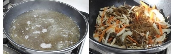 냄비에 물이 끓으면 당면을 넣고(당면이 잠길 정도의 물 양)
