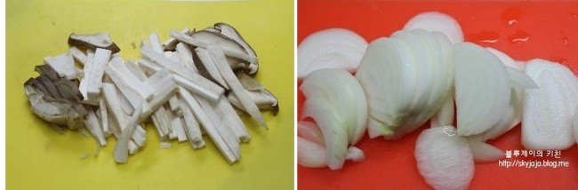 표고버섯과 새송이버섯, 양파와 당근은 모두 채썰어줍니다.