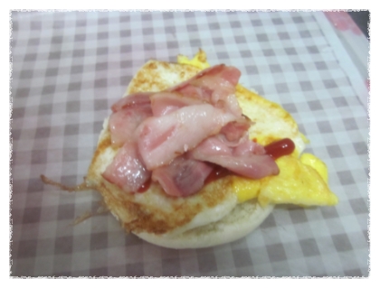 3.계란위에 구운 베이컨을 먹기좋게 썰어 올려주세요.