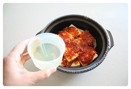 그리고 다시마 멸치육수 1+1/2컵을 붓고