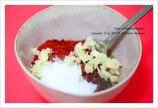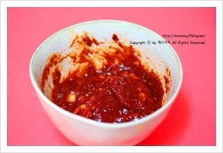 고추장 2, 다진마늘 0.5, 고춧가루 1, 설탕 1, 맛술 1, 후추조금 넣어서