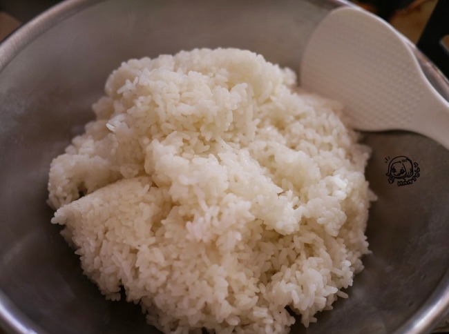 살아있는 쌀밥을 퍼서 김밥 만들기 시작!