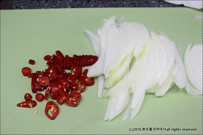 소라 100-200g(마트 소포장), 양파 반개, 홍고추 2개