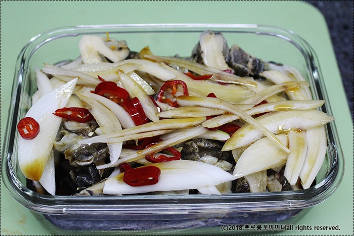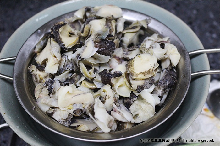 세일상품 산거라 그런지 약간 냄새가 나서 청주에 데쳤어요.