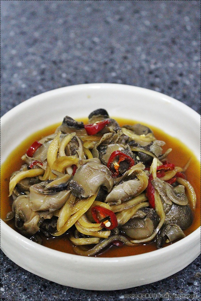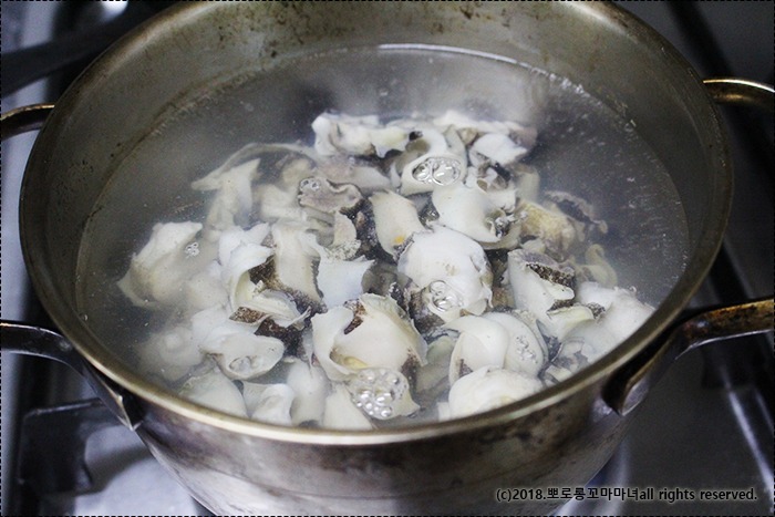 한번 끓는 물에 청주 넣고 데친 뒤에