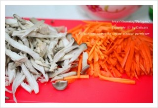 참타리버섯은 찢어주시고 당근은 채썰고..