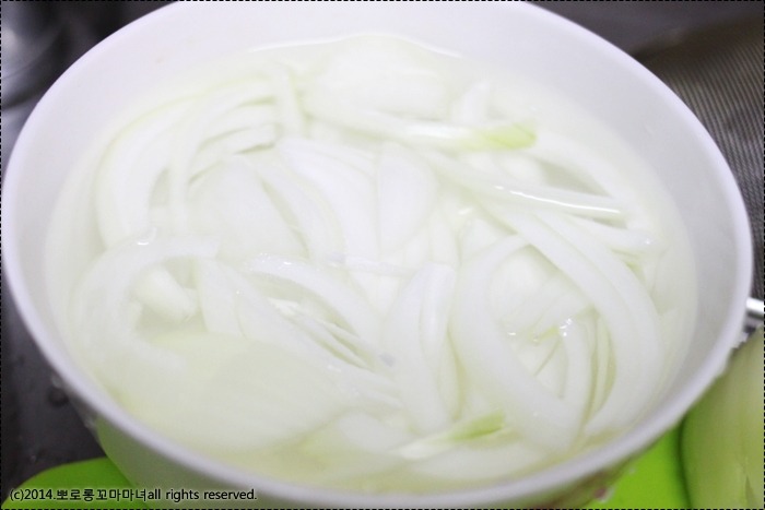 양파는 아린맛때문에 채썰어서 찬물에 20분정도 담가서 아린맛 제거 후에 물기 빼주시구용~