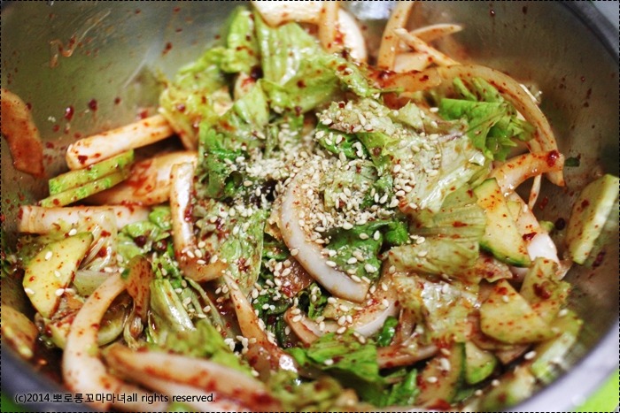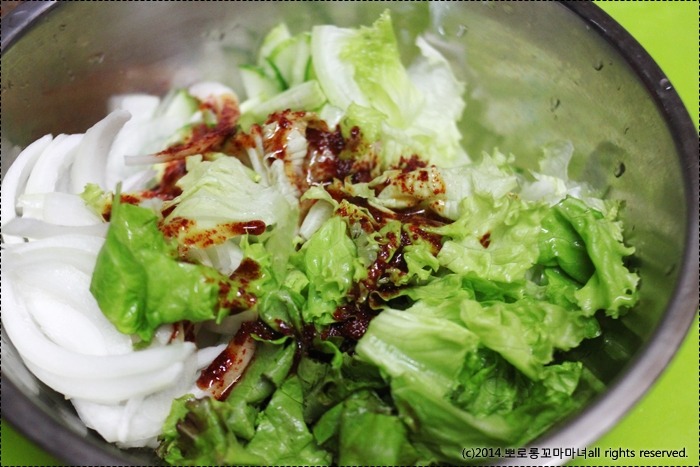 여기서 채소의 양이 많아지면 양념의 양을 좀더 많이 첨가해야 하는데..