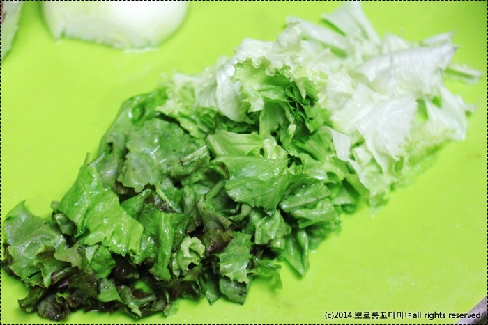 상추가 제법 큰 포기상추라서 그런지..대략 4-5장 넣어줬는데..