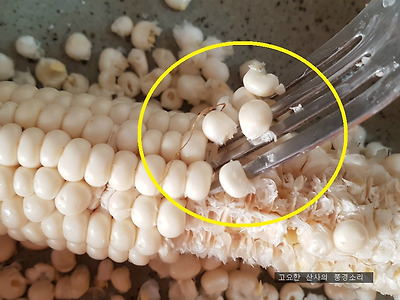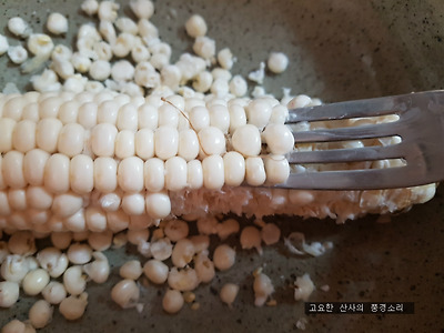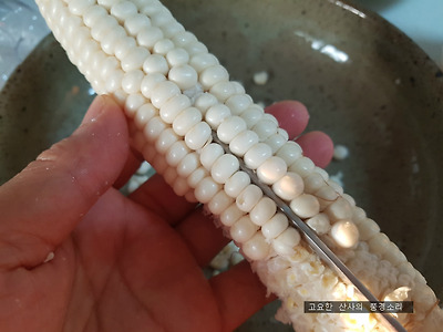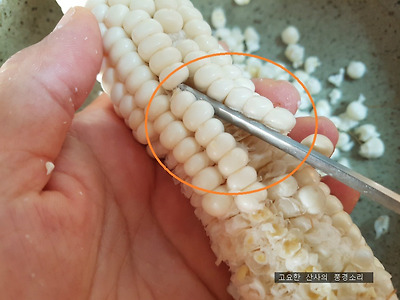 삶은 옥수수 알을 빼서