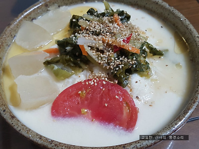 ▶ 재료 ; 콩물 3국자, 열무, 깨소금, 참기름, 토마토, 얼음