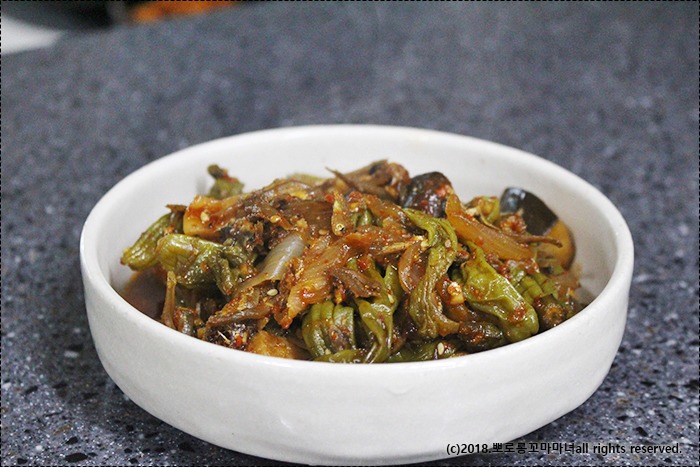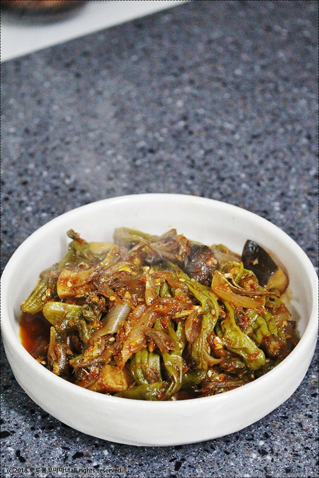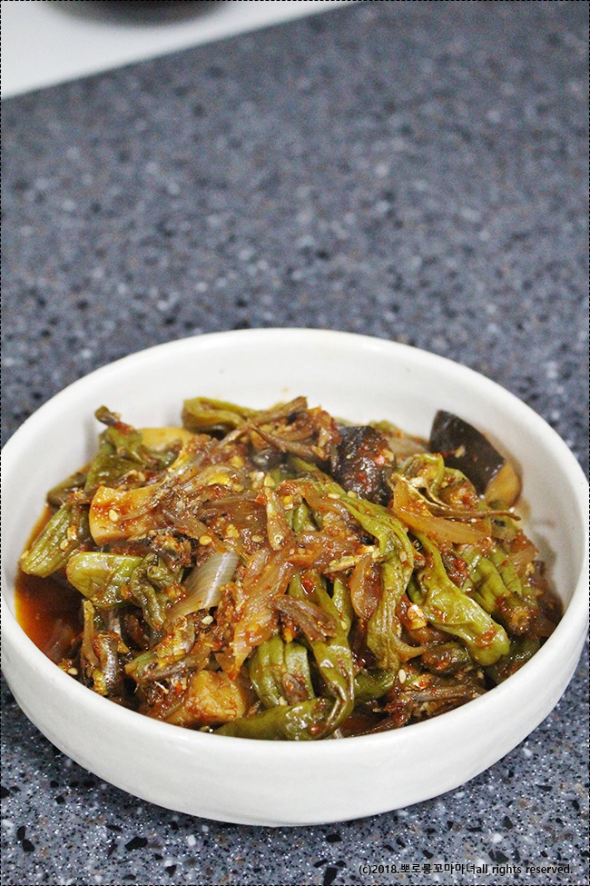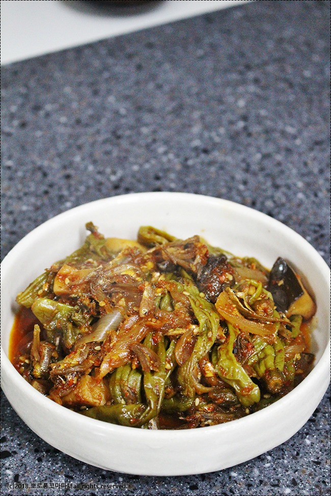 오늘 소개할 것은 꽈리고추 버섯 조림입니다.