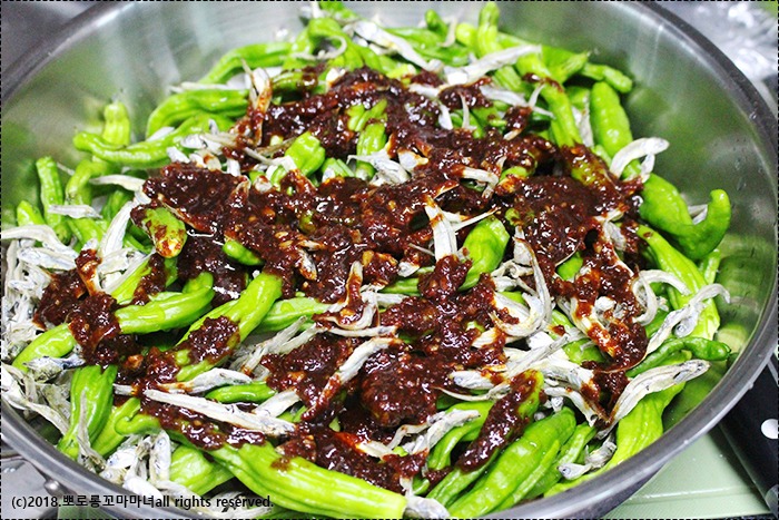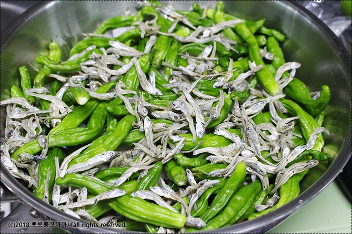 꽈리고추랑 멸치 후루룩 넣어줬어요.
