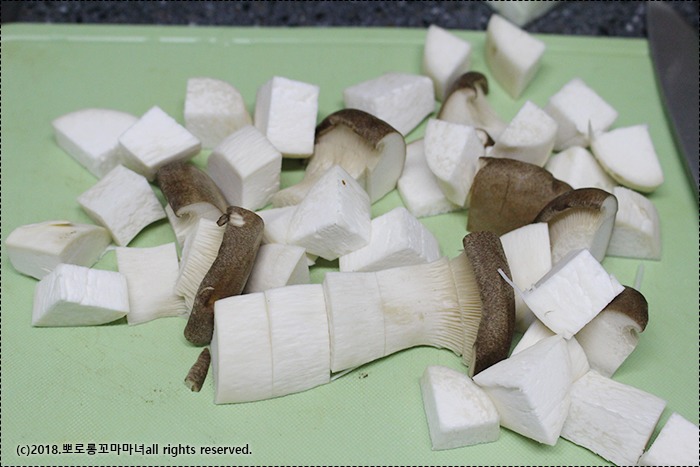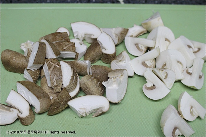 버섯은 큼직하게 먹기 좋게 잘라주세요.