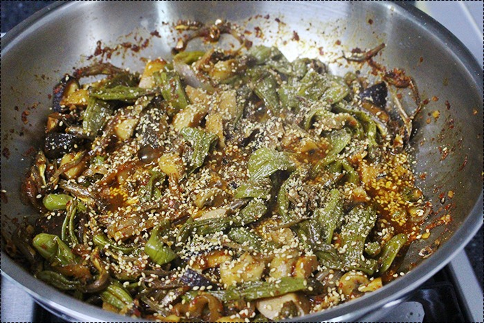 다 졸이면 꽈리고추 버섯 조림은 불 끄고 통깨 좀 넣어서 마무리하면 끝~~~
