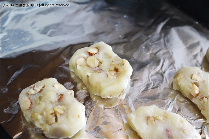 달달함이 아쉬운 분들은..반죽을 굽기 전에..반죽에 설탕을 좀 묻혀서 구우면 좀더 달콤해져요^^