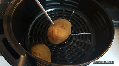 ㉡ 씻은 감자는 에어프라이어에 15분을 두 번 돌려 익혀준다.