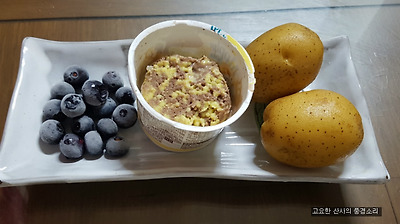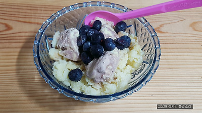 ▶ 재료 : 감자(소) 2개, 아이스크림 1통, 복분자(블루베리) 30알 정도