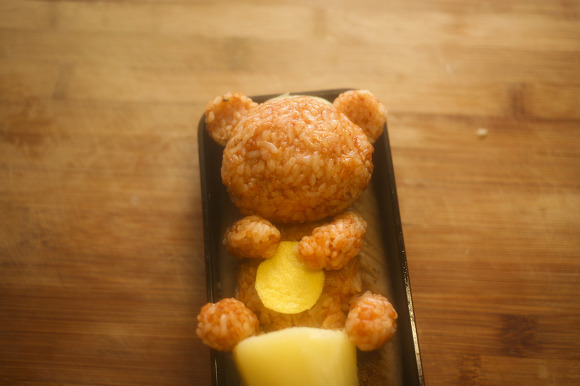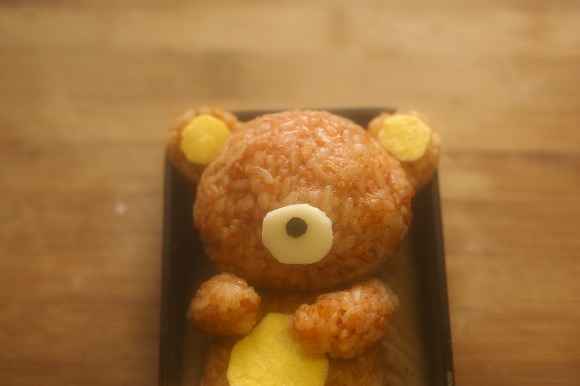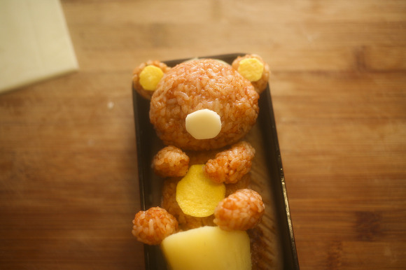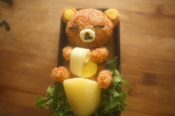 치즈로 땀방울을 표현해주면 리락쿠마 캐릭터도시락 완성이지요.