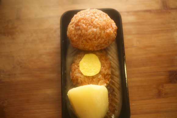 케찹에 볶아준 밥을 한 웅쿰쥐어 배와 머리를 동그랗게 만들고