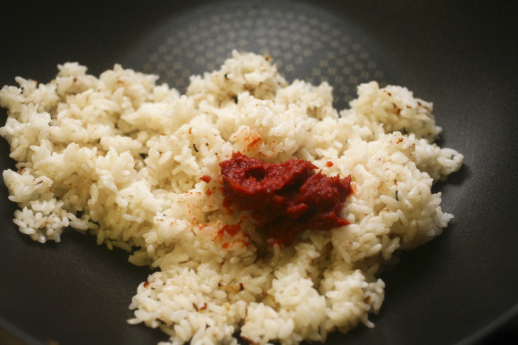 식혀놓은 찬밥을 넣고,볶아주세요.