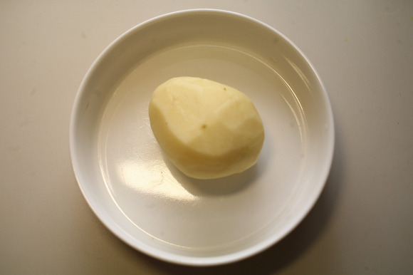 감자1개를 껍질을 벗겨 주세요.