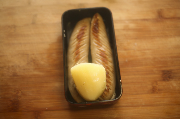 자른 감자를 도시락에 세워주고