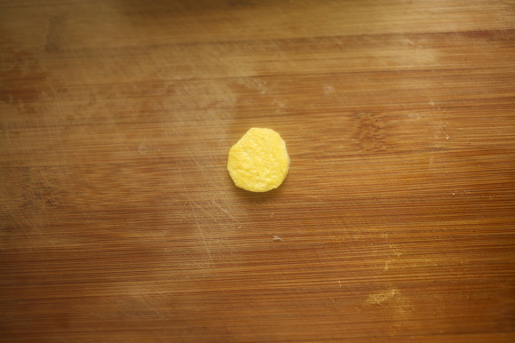 그리고 남은 달걀지단으로 동그랗게 오린 후 붙여준 귀에 올리고