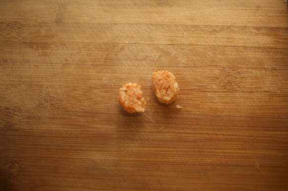 그리고 밥으로 손가락 2마디 크기로 손을 만들어 올리고