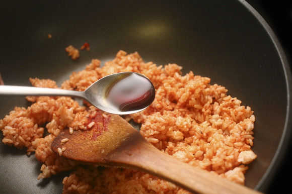 케찹에 버무리며 볶아준 밥위에 소금, 우스터소스를 넣고 버무려 주면 도시락용
