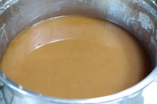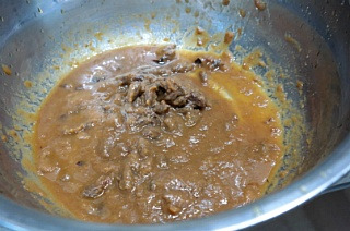대추 끓인 물과 과육 걸러낸 것을 같이 넣고