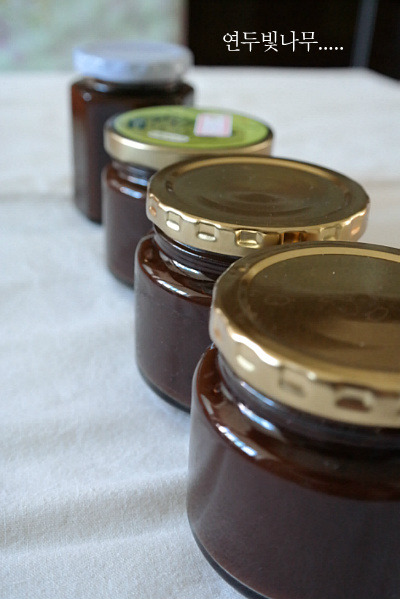 뜨거울 때 소독한 유리병이 소분해 넣었습니다.