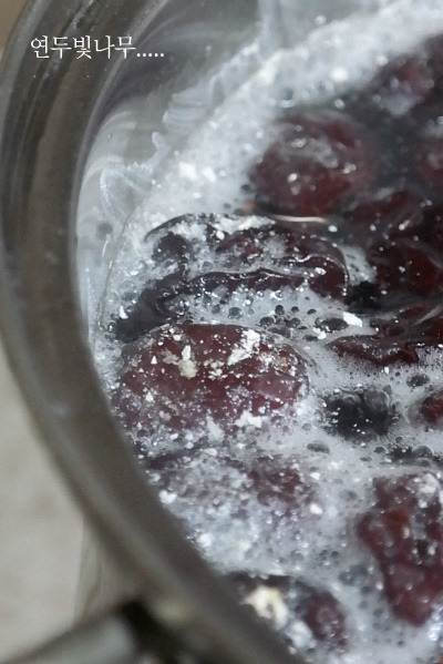 대추를 끓이다 보면 요렇게 흰 가루 같은 것들이 올라오는데요.