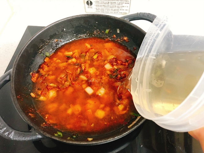 둘다 없다면 생수를 사용해도 되지만, 육수로 끓이면 맛이 진해요