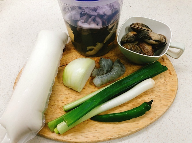 생새우 3마리 ( 조개가 적어서 추가한거라 생략가능)