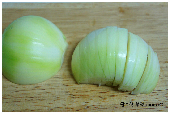 전골냄비 바닥에 양파를 먼저 골고루 갈아주고,