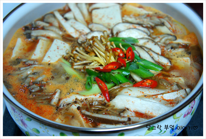 두부와 버섯은 금새 익으니 오래 끓이지 않아도 되구요~