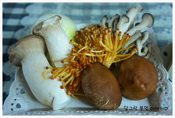 버섯은 깨끗히 씻어서 먹기 좋게 잘라 놓구요~